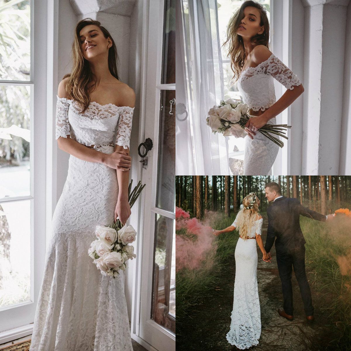 2019 Lace Mermaid Wedding Dresses Half Long Sleeves Off The