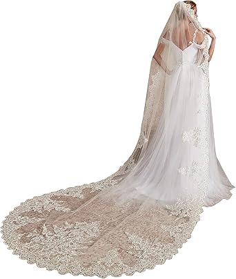 Elliehouse Women S Long Sequin Lace Ivory Wedding Bridal Veil With