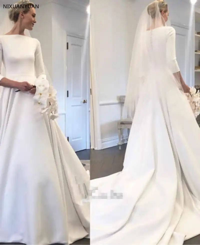 A Line 2020 Wedding Dresses With Three Quarter Sleeve New Meghan