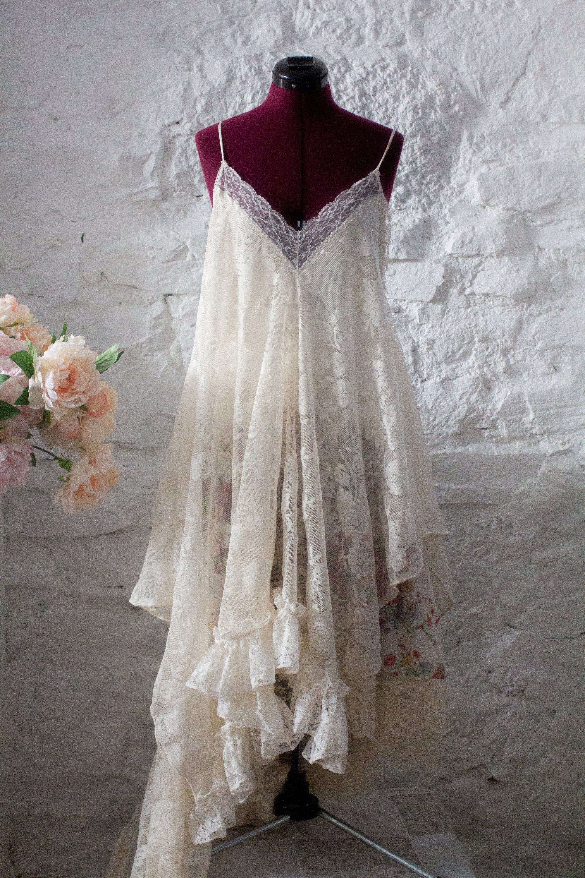 Lace Alternative Wedding Dress Upcycled Boho White Festival Etsy