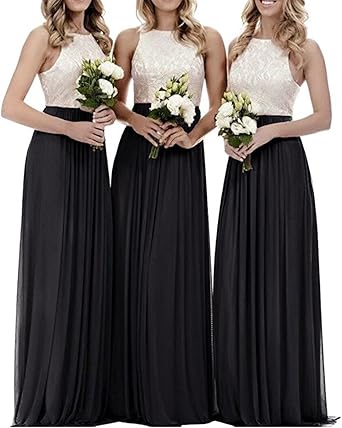 Amazon Com Zvocy Women S Halter Lace Chiffon Bridesmaid Dresses