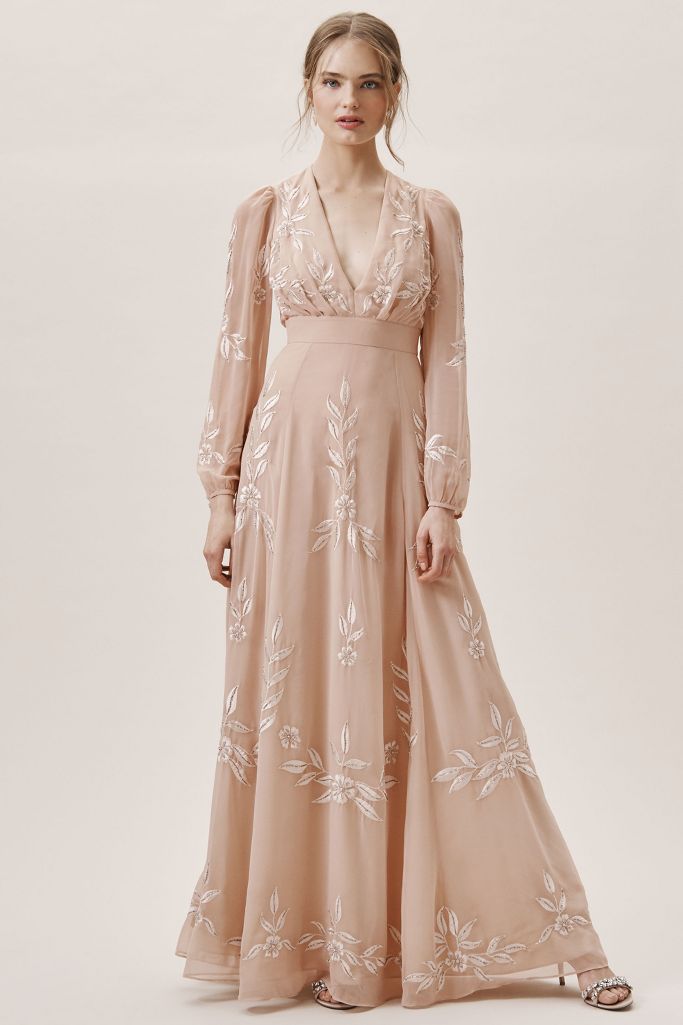 Anthropologie Bhldn Belize Size 2 Oyster Beige Beaded Embroidered