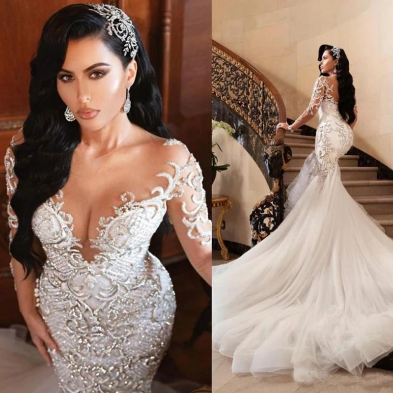 Luxury Dubai Arabic Mermaid Wedding Dresses Plus Size Beading