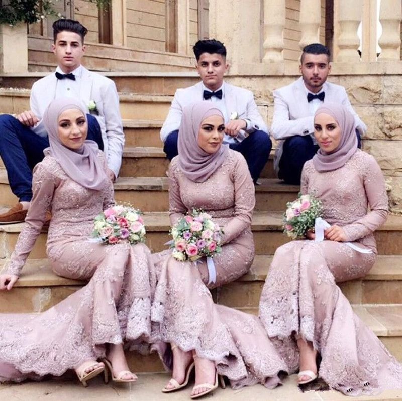 Long Sleeve Burgundy Bridesmaid Dresses Mermaid Long Lace