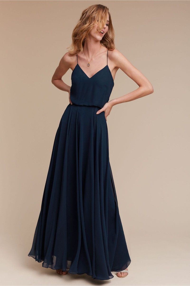 Bhldn Spaghetti Neckline Prom Dresses Long Simple Design Dark Navy