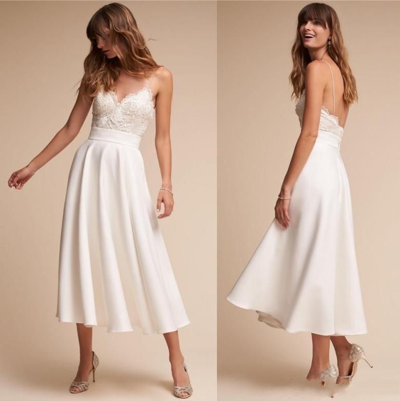 Discount Retro 1920s Tea Length Bhldn Wedding Dresses 2018 Simple