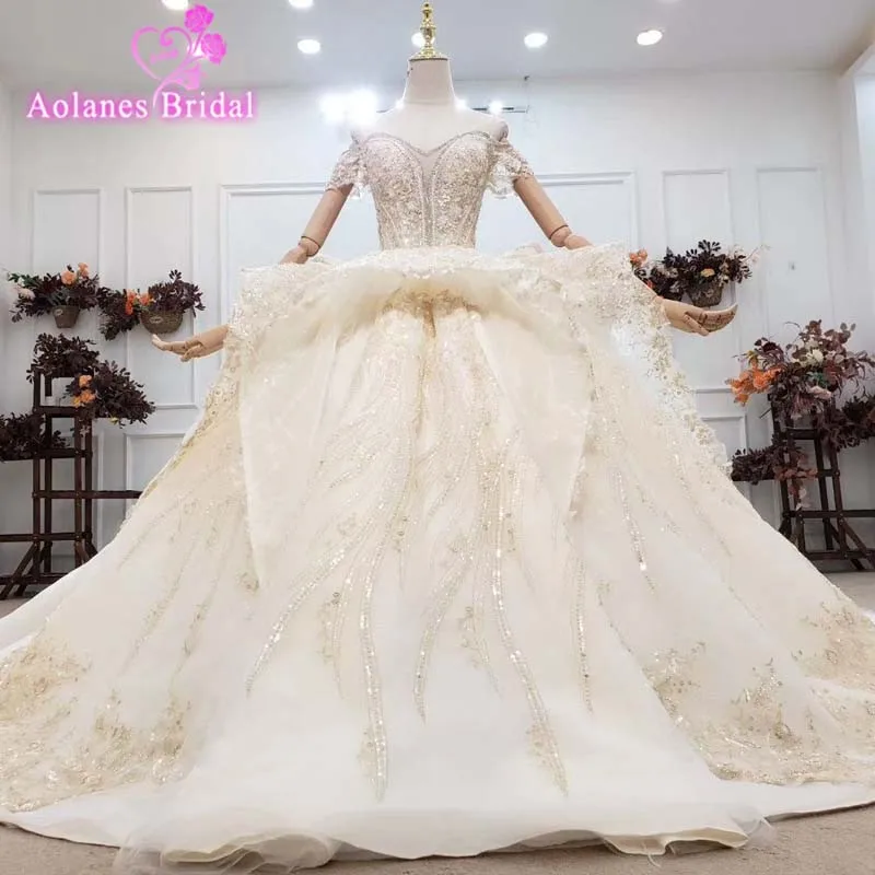 Ball Gown Wedding Dresses 2019 Big Puffy Half Sleeve Lace Wedding