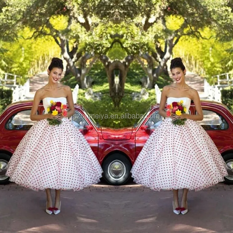 Women Vintage 1950s Tea Length Little Polka Dots Tulle Wedding