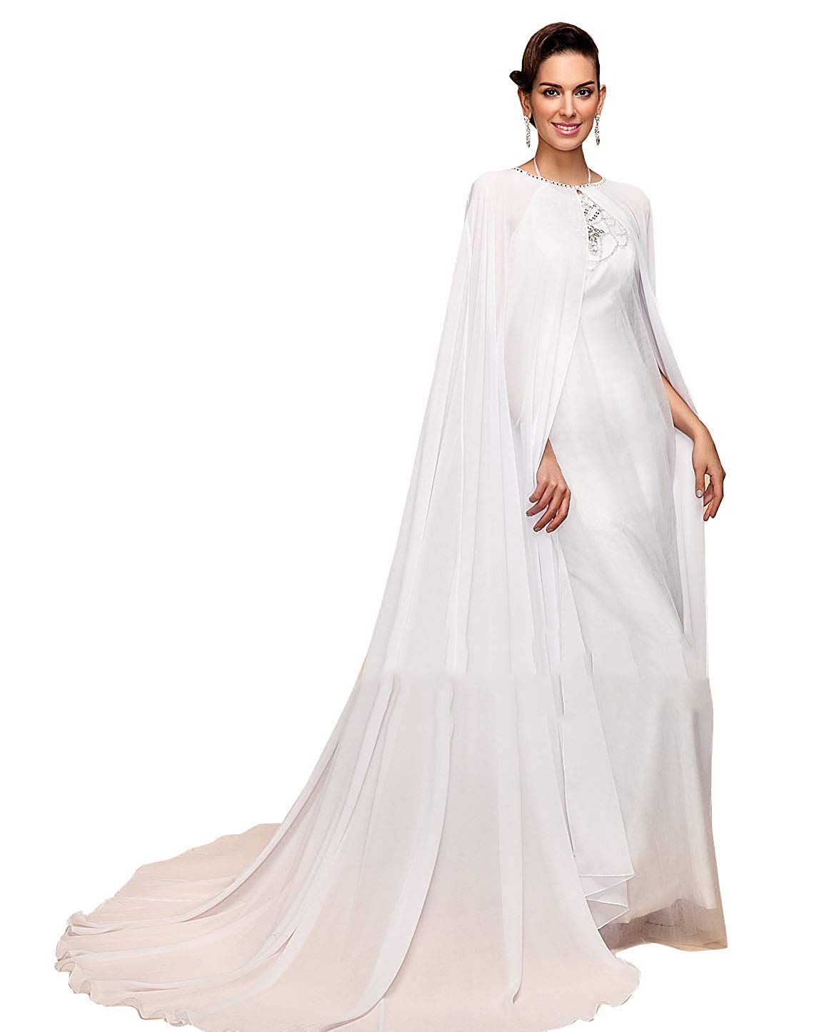 Elliehouse Long Chiffon Bridal Cape Wedding Veil Cloak For Bride