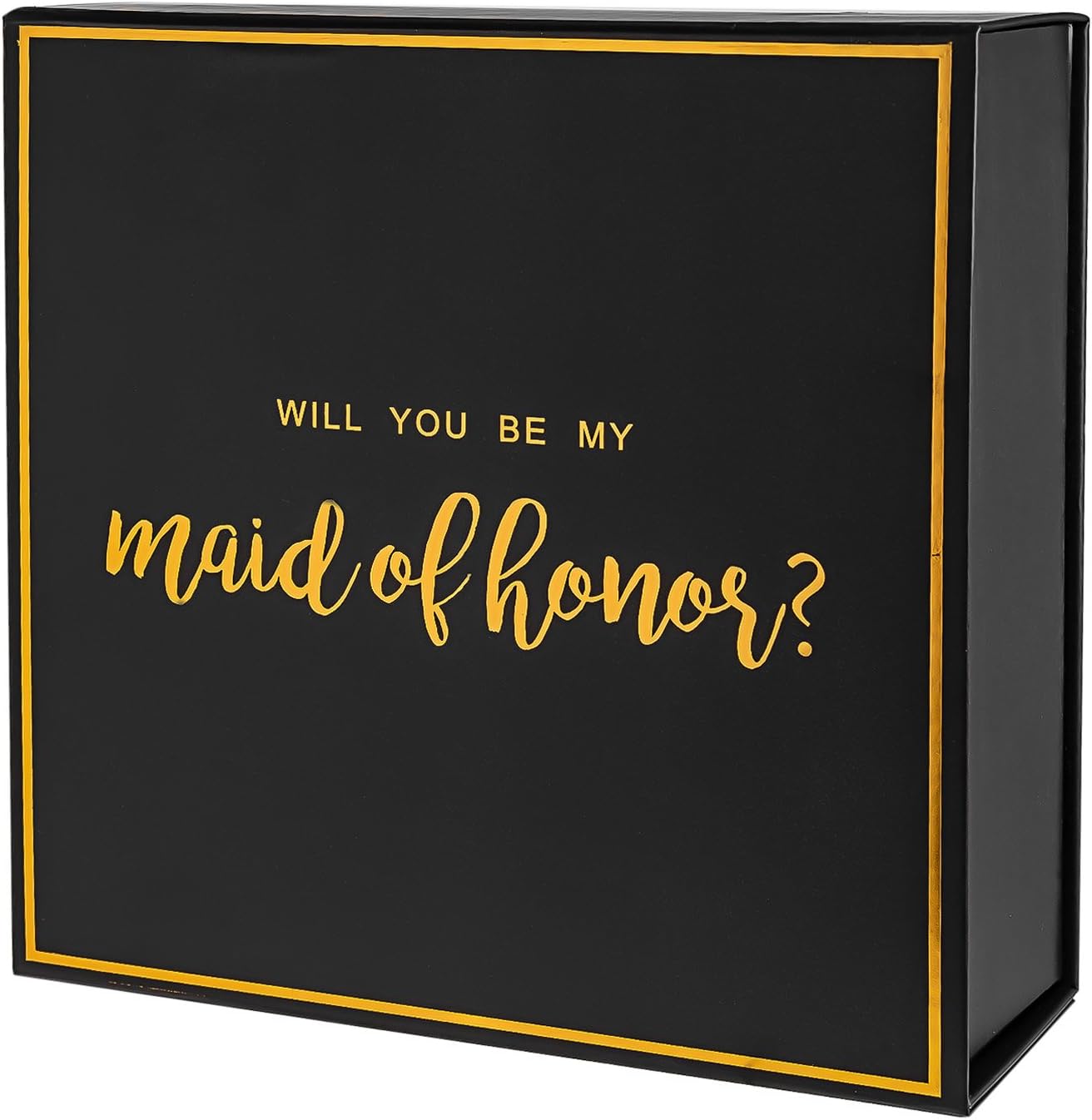 Amazon Com Crisky Black Maid Of Honor Proposal Box With Gold