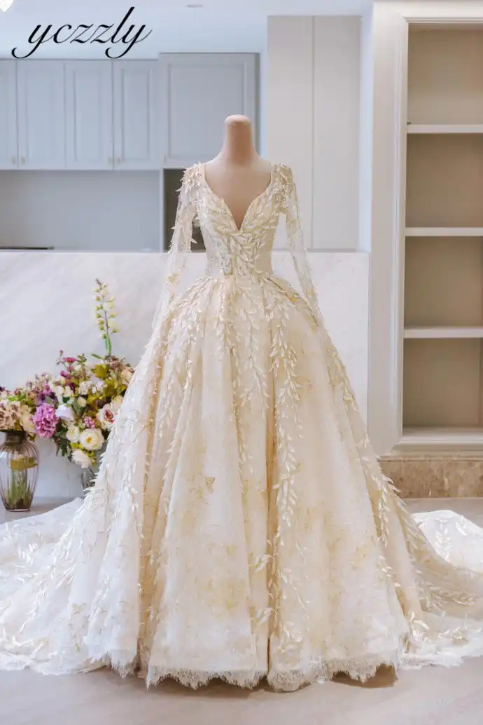 Sparkly Bling Bling Plus Size Champagne Wedding Dresses 2019 A