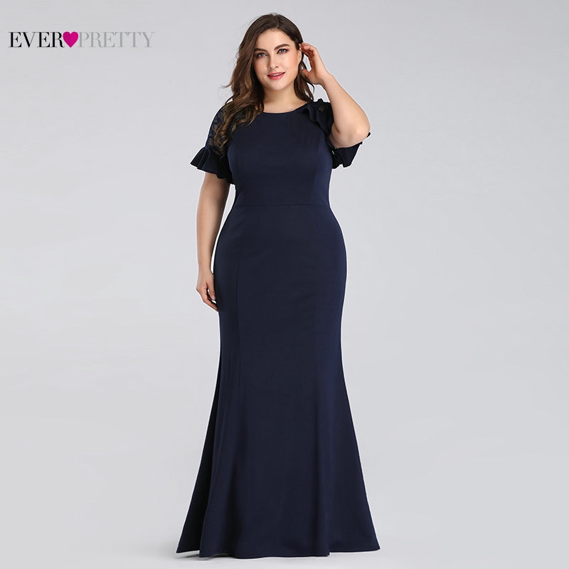 Ever Pretty Plus Size Long Dinner Dress Long Navy Blue Lace Sleeve