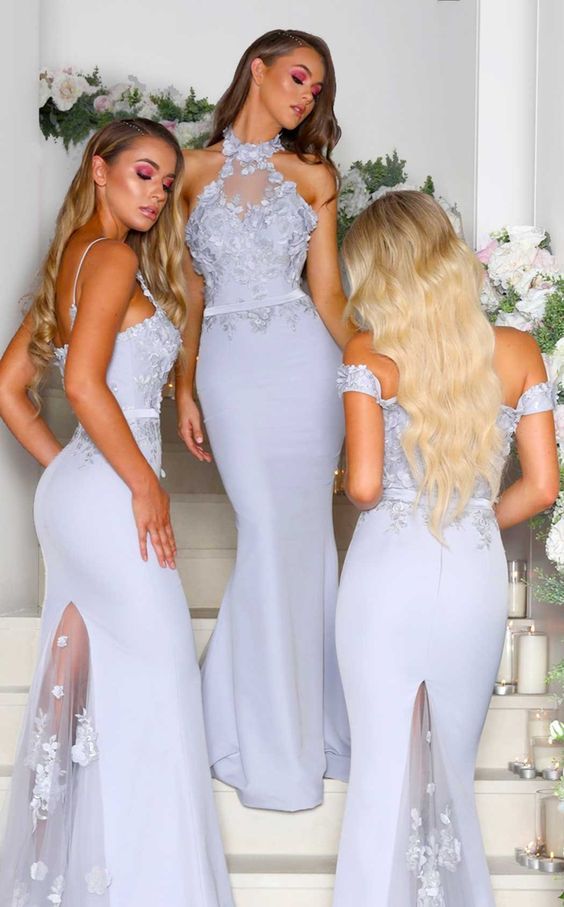 Mismatched Dusty Blue Maid Of Honor Dresses Halter Tight Mermaid