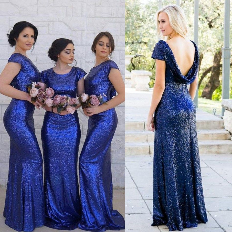 Nigerian Country Royal Blue Sequined Bridesmaid Dress Jewel Neck