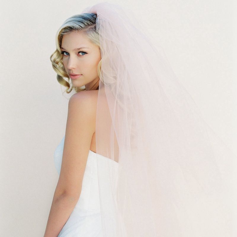 Pink Blush Wedding Veil Any Length Or Colour 2 Tier Plain Lbv156