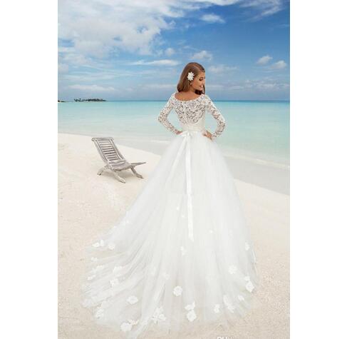 W1012 Beautiful Beach Long Sleeve Ball Gown Wedding Dresses Boat