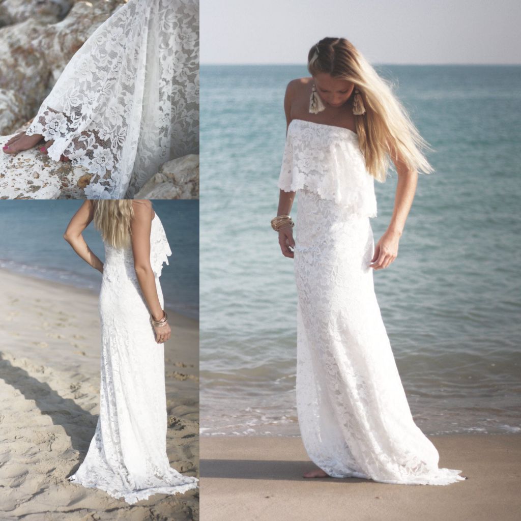 Discount New 2020 White Lace Bohemian Wedding Dresses Vintage