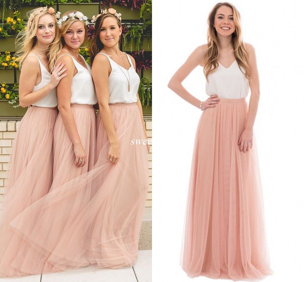 Two Tone Country Wedding Boho Bridesmaid Dresses Tulle V Neck 2019