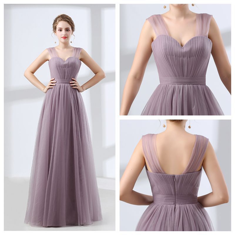 Spaghetti Tulle Lilac Bridesmaid Dresses Pleated Maid Of Honor