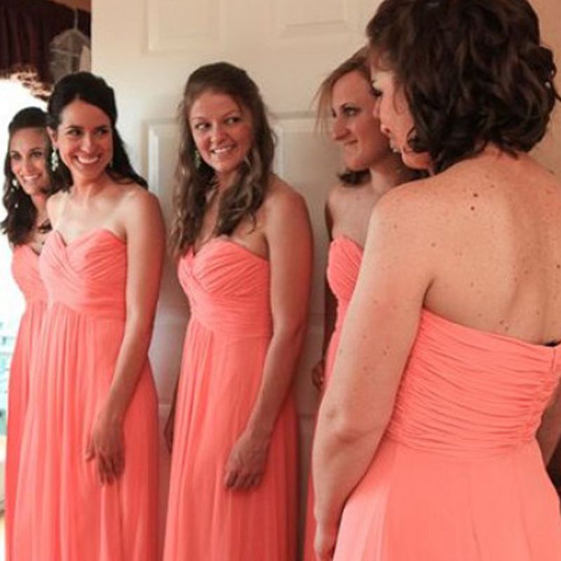 Coral Bridesmaids Dresses Sweetheart Sleeveless Pleated Chiffon