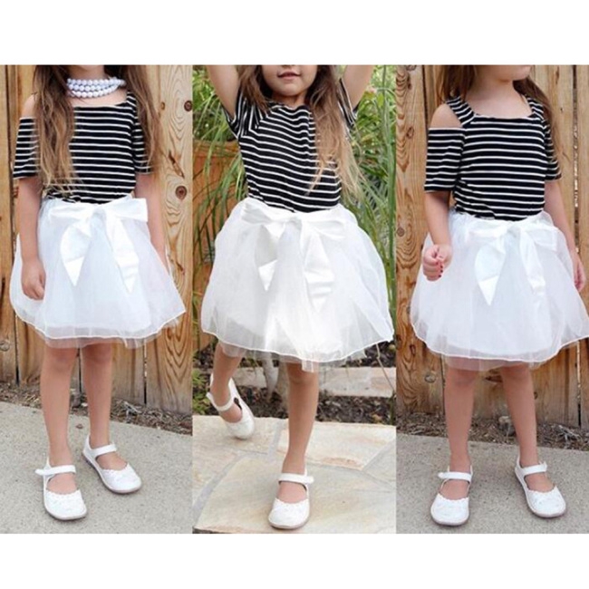 Summer Stylish Girl Bowknot Striped Dress Cute Bare Shoulder Skirt