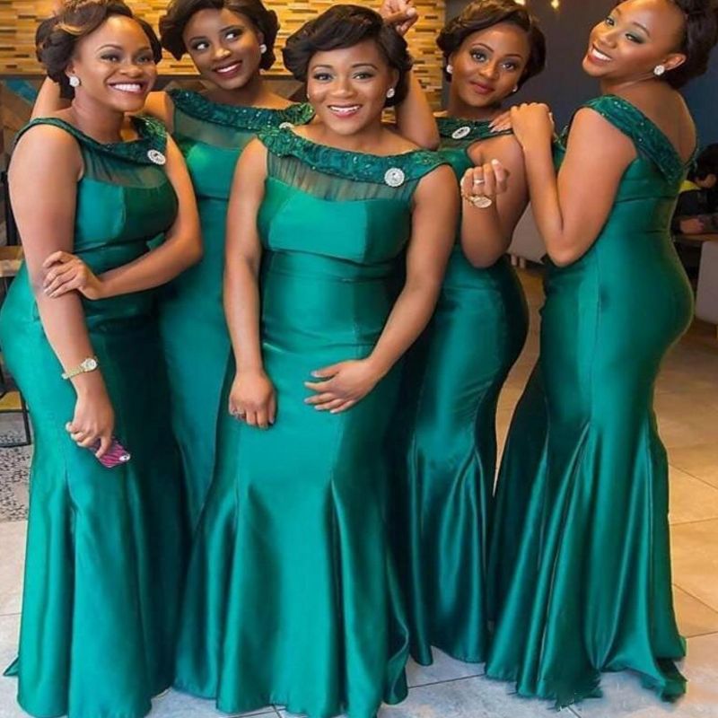 Dark Green Plus Size Bridesmaid Dresses For Wedding Satin Mermaid