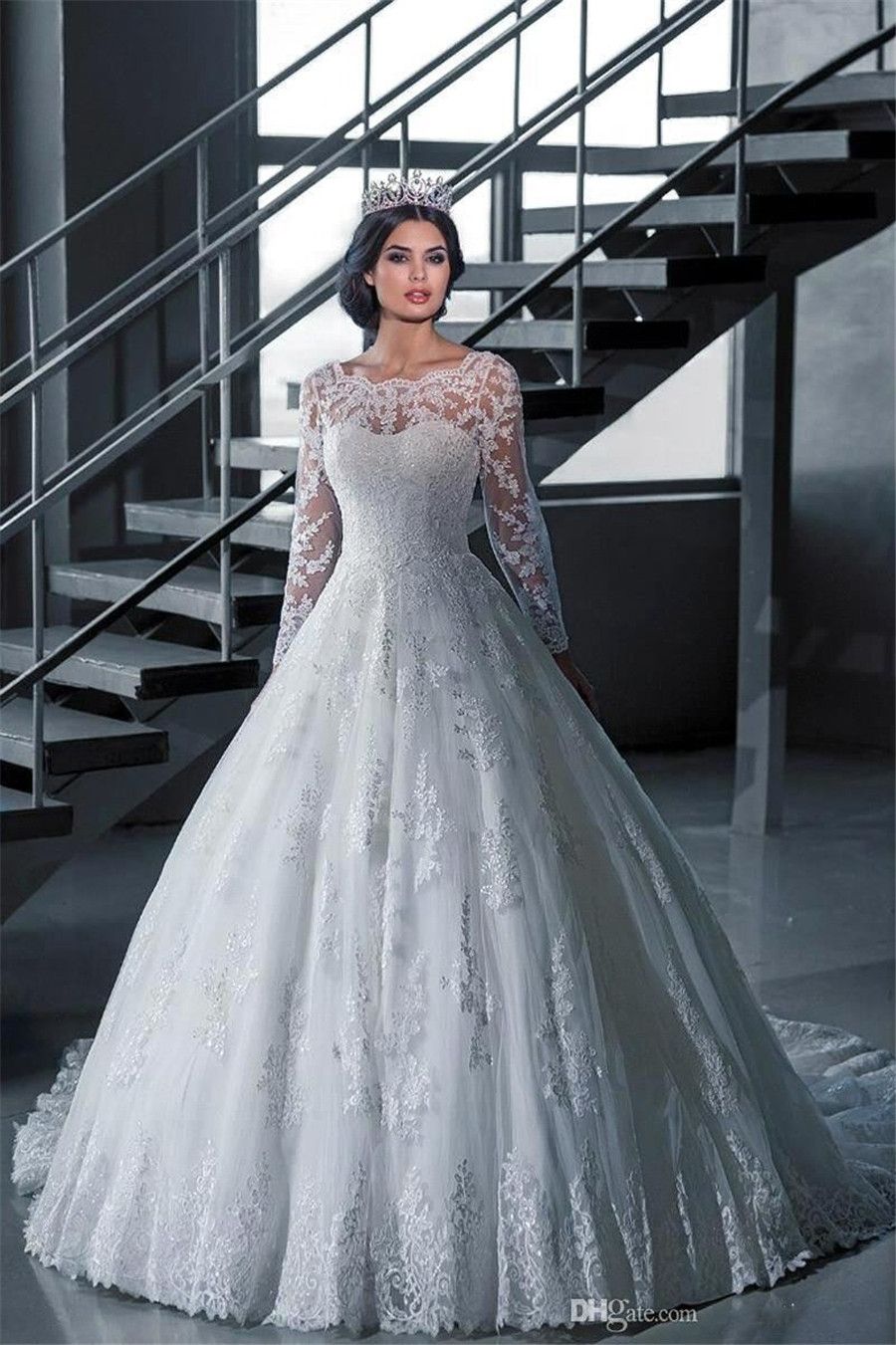 Discount 2016 Plus Size Lace Wedding Dresses Sleeves Sheer Neck Illusion Back Puffy Sweep Train Garden Bridal Gowns 2015 Cheap New Lace Vintage Wedding Dresses Luxurious Wedding Dresses From Marrysa 154 09 Dhgate Com