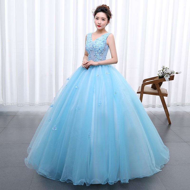 Julia Kui Gorgeous Ball Gown Wedding Dress Sky Blue Color With Elegant Appliques 3d Flowers Wedding Gown Off The Shoulder Wedding Dresses Aliexpress
