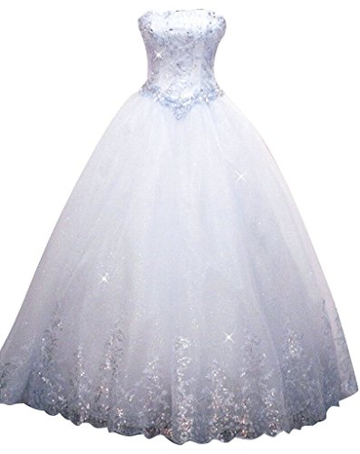 Lantesi Women S A Line Crystals Wedding Prom Dress Size 18 White
