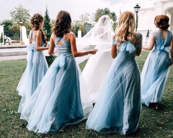 Dusky Blue Prom Bridesmaids Maxi Wear Shoes Wedding
