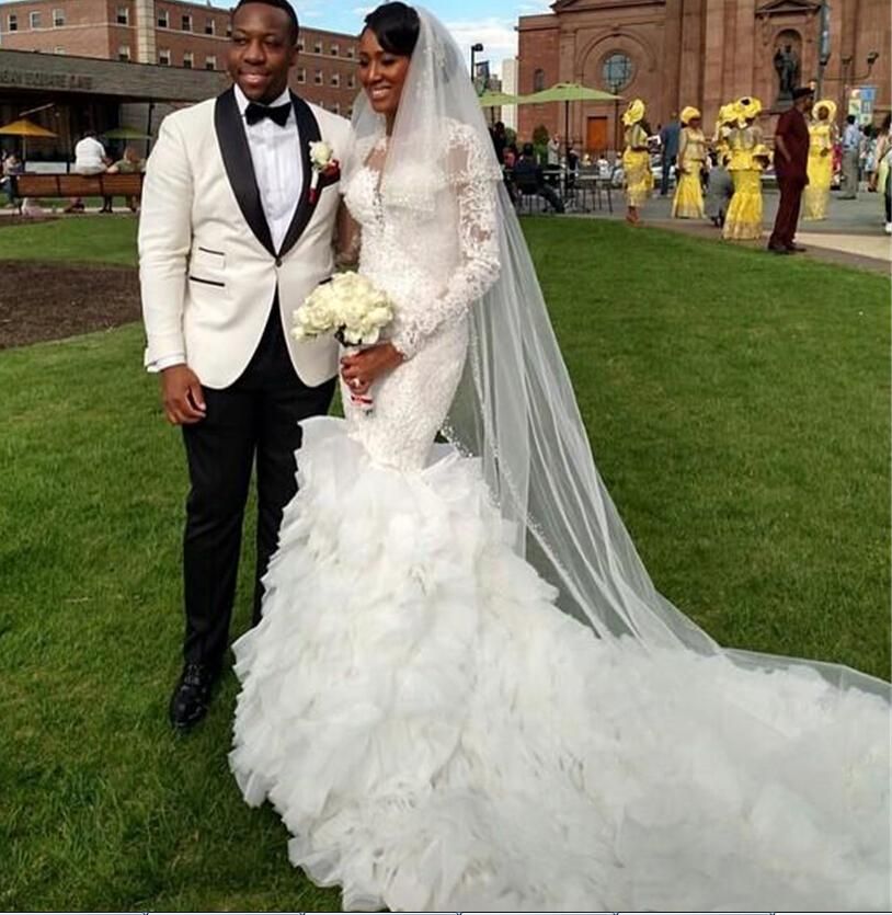 Long Sleeved Arabic 2015 Wedding Dresses Cascading Ruffles White