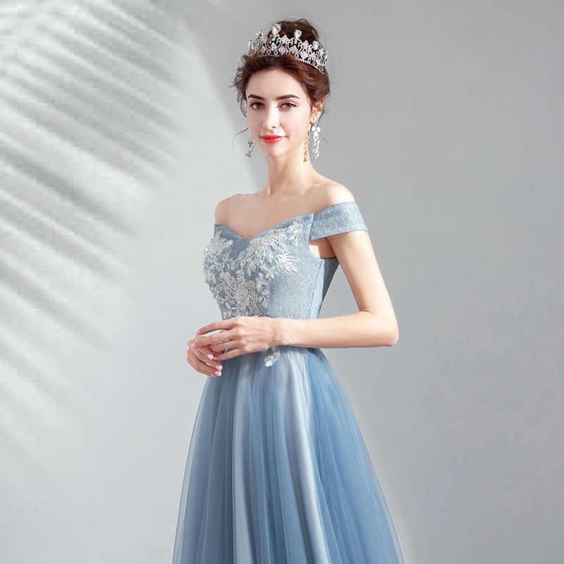 Elegant Fog Blue Short Bridesmaid Dress Birthday Shopee Malaysia