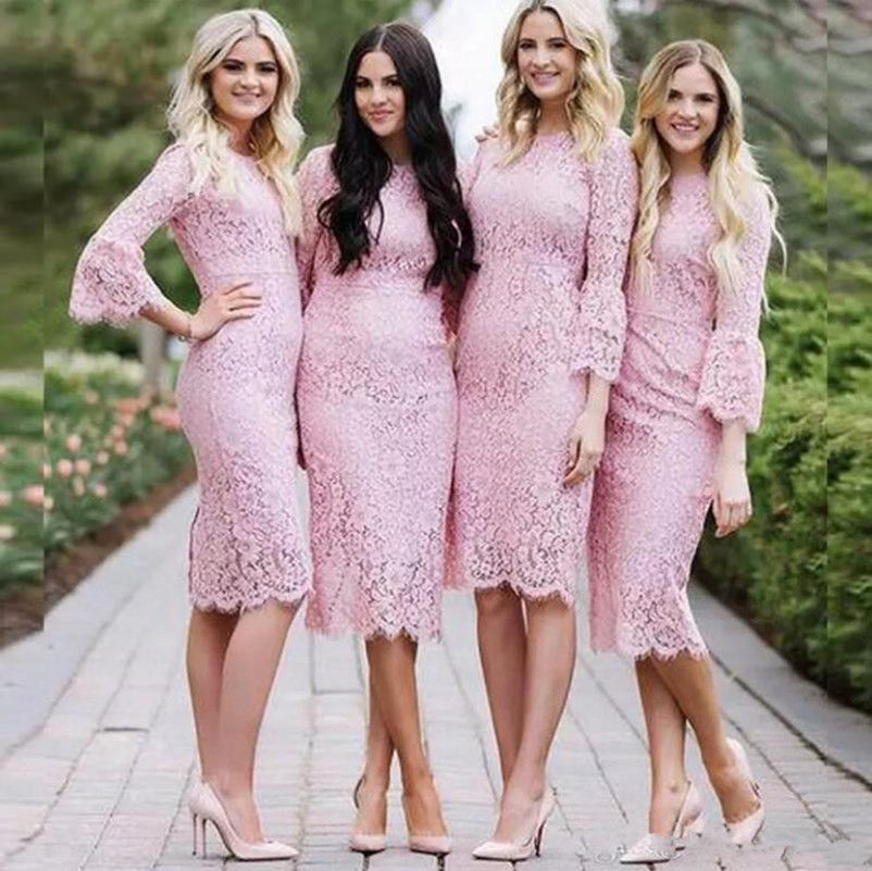 2018 Pink Full Lace Bridesmaid Dresses Knee Length Short Sheath Wedding Guest Party Gowns Custom Made Maid Of Honor Gowns Bridesmaid Dress Colours Bridesmaid Dress Pattern From Setwell 63 9 Dhgate Com