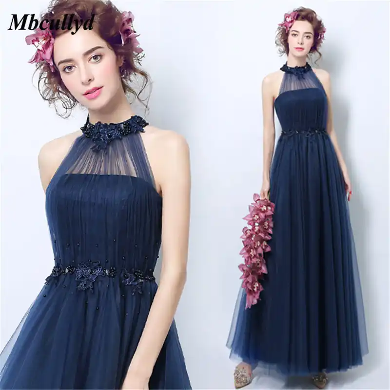 Mbcullyd Elegant Long Bridesmaid Dresses A Line Halter Neck Cheap