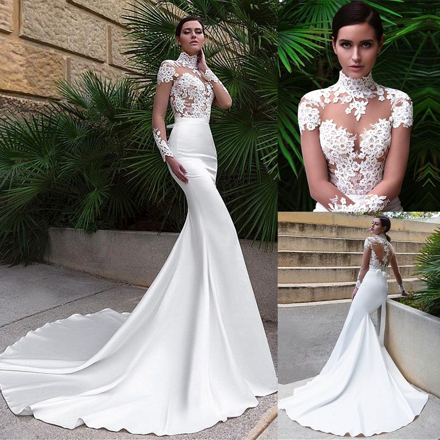 High Collar Lace Mermaid Wedding Gowns With Sleeves