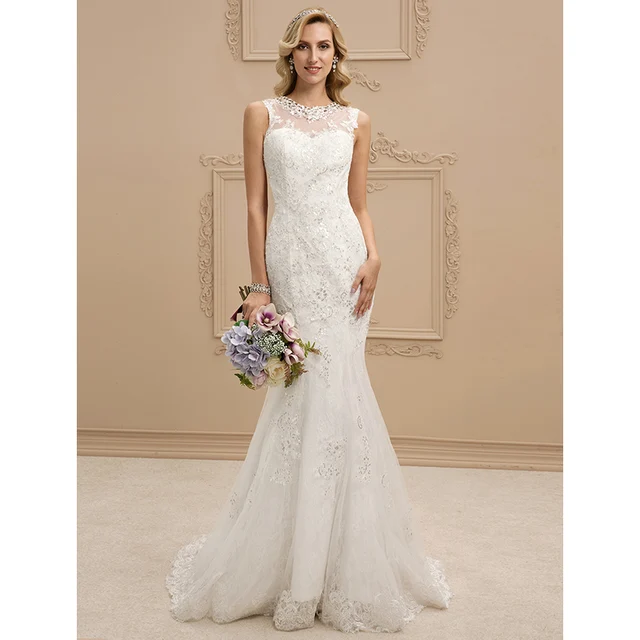 Illusion Bateau Neckline Embroidered Mermaid Wedding Dresses With