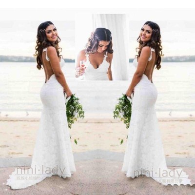Sexy Backless Wedding Dresses White Ivory Lace Mermaid Beach