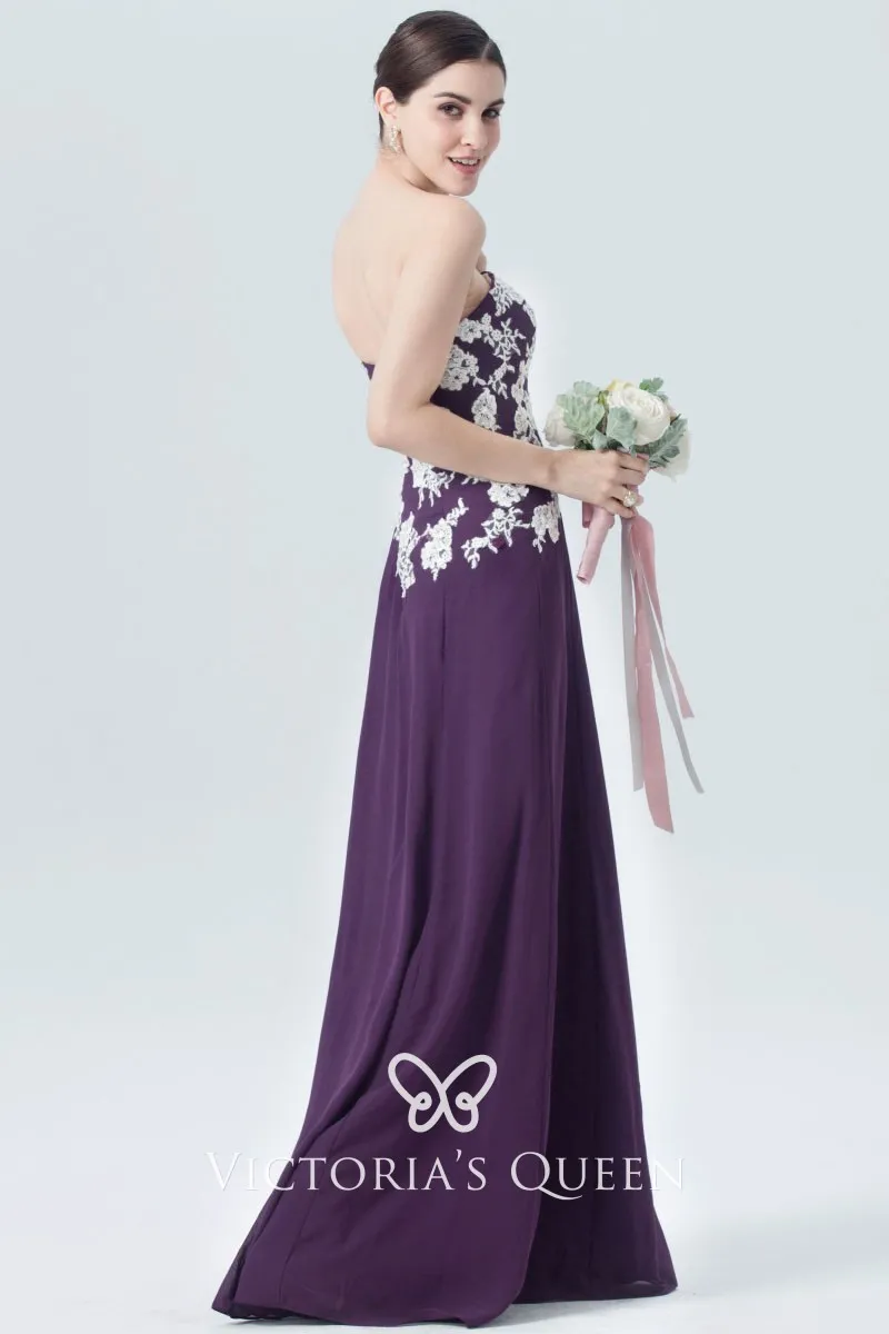Mauve Lace And Chiffon Illusion Long Bridesmaid Dress Vq