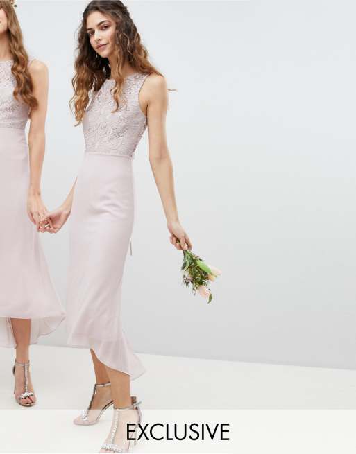 Tfnc Lace Up Back Midi Bridesmaid Dress Asos