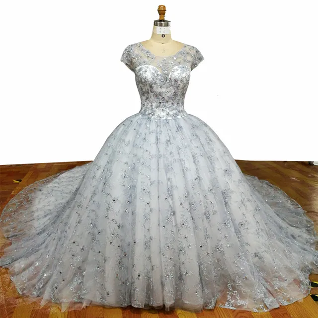Elegant Ball Gown Wedding Dresses Lace 2020 Crystal Gold Wedding