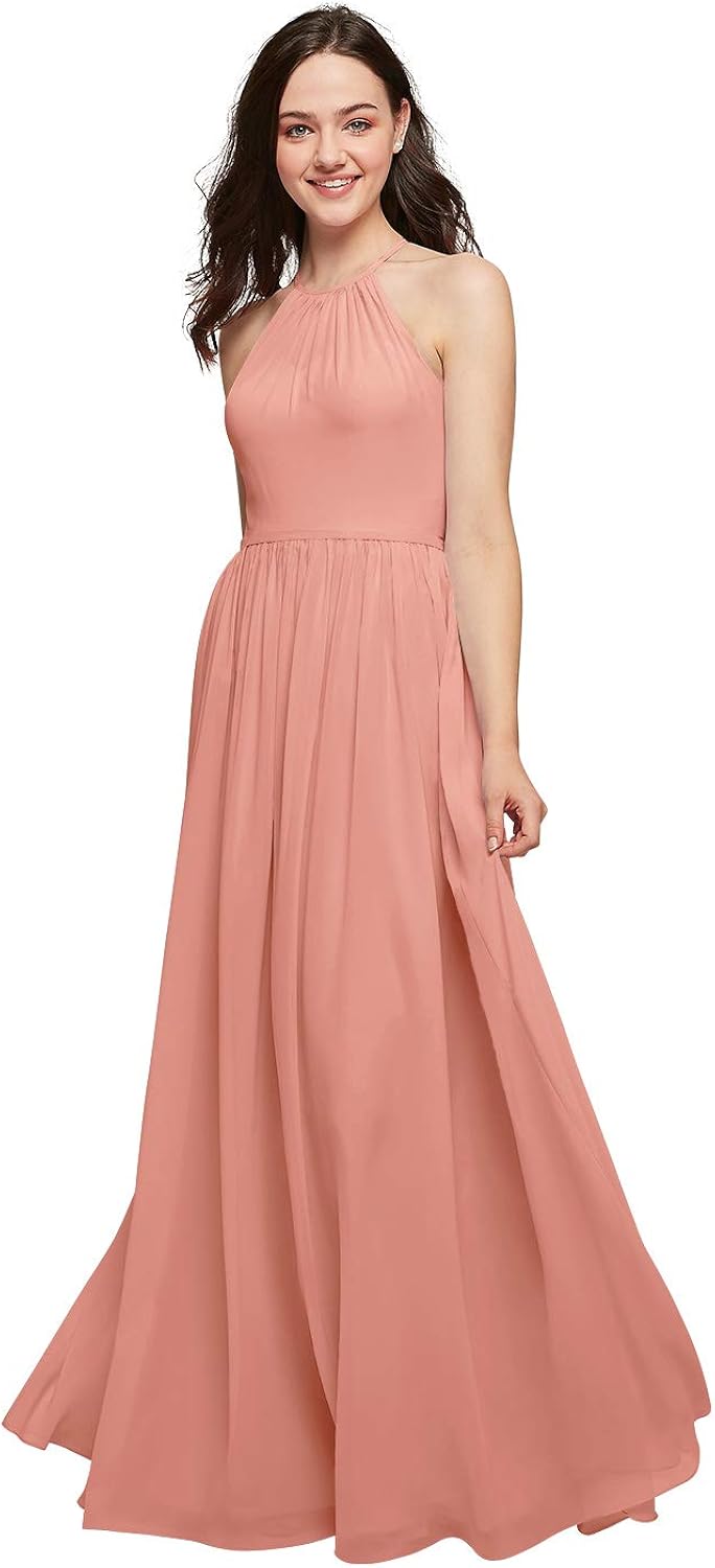Amazon Com Aw Bridal Chiffon Halter Maxi Bridesmaid Dresses A Line Plus Size Long Formal Dresses For Wedding Party