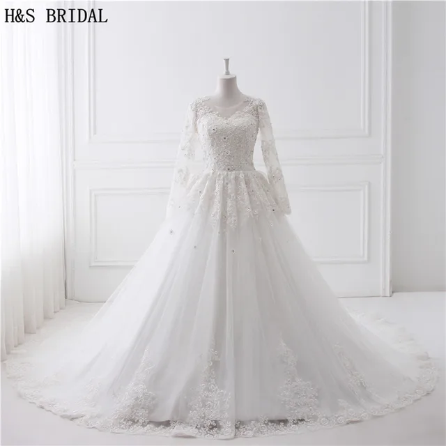 Cathedral Train Ball Gown Long Sleeves High Neck Lace Wedding