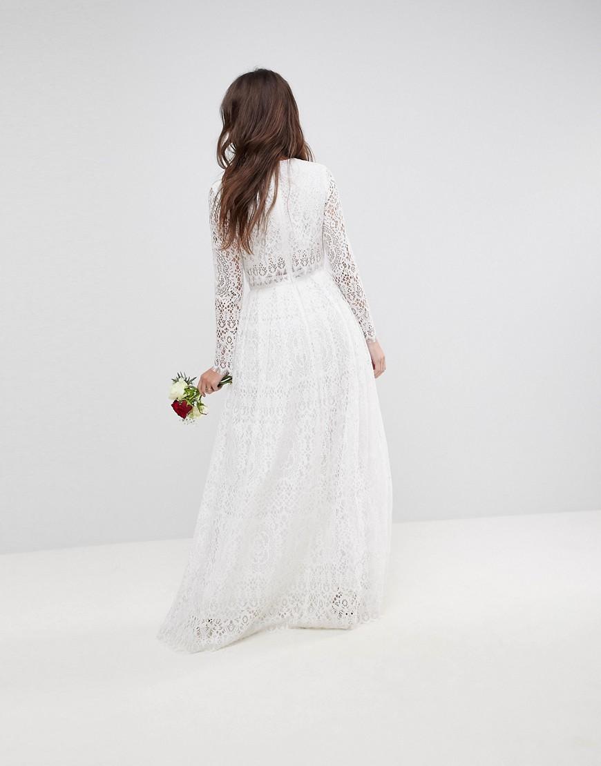 Asos Lace Long Sleeve Crop Top Maxi Wedding Dress In White Lyst