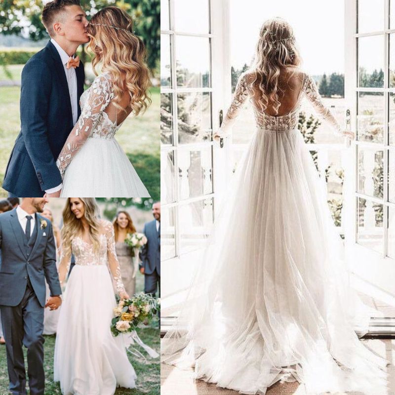 Long Sleeve Lace Low Back Plus Size Wedding Dress Daisystyledress
