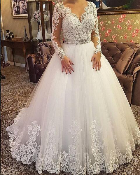 2018 A Line Wedding Dress V Neck Sheer Long Sleeves Lace Long Wedding Dresses Bridal Dress Wedding G On Luulla