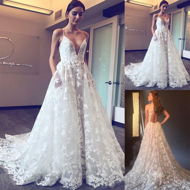 Booma Sexy Deep V Neck Long Sleeve Lace Wedding Dresses Boho 2020 Open Backless White Ivory Beach Bohemia Bridal Gowns Plus Size Wedding Dresses Aliexpress