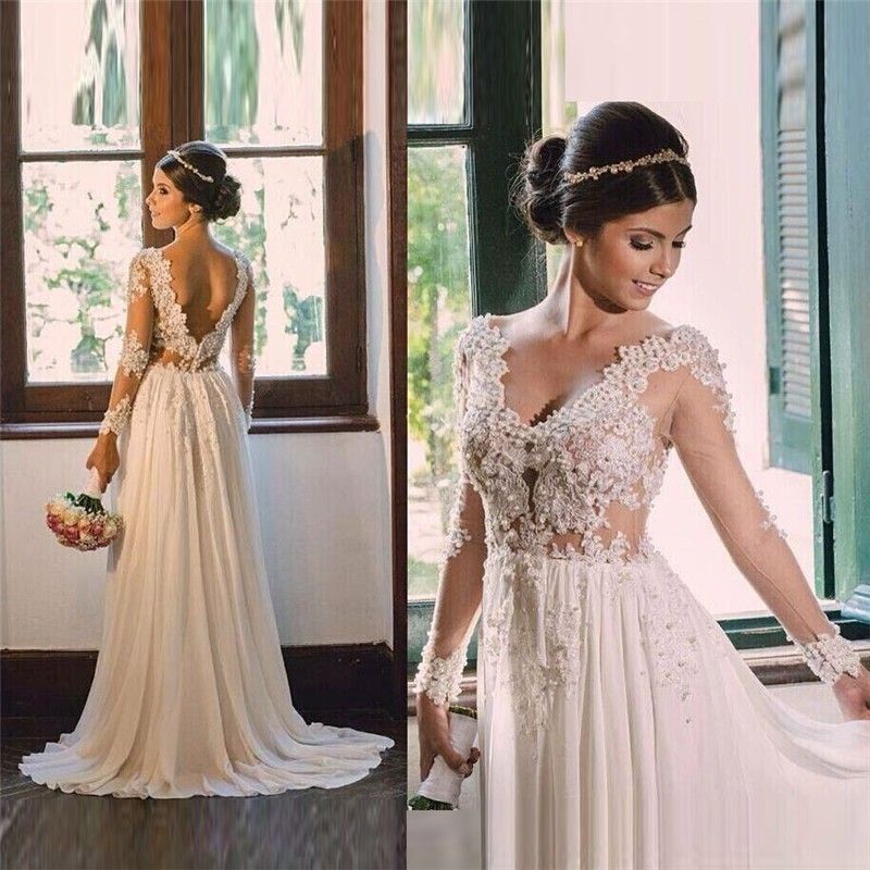 Discount Vintage Lace Long Sleeve Beach Wedding Dresses 2016 Sexy