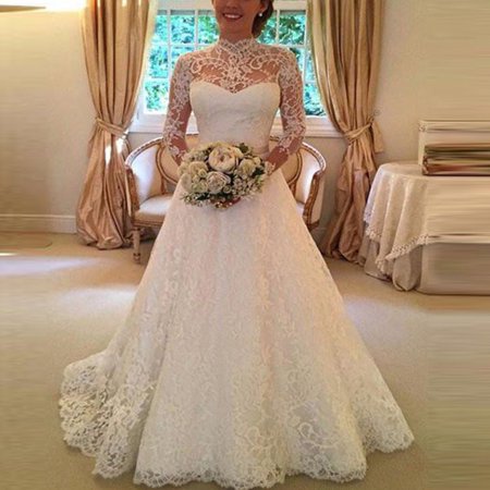 Outdoorline Women Transparent Long Sleeve Wedding Dress Lace Bridal Ball Gowns Photo Custom Walmart Canada