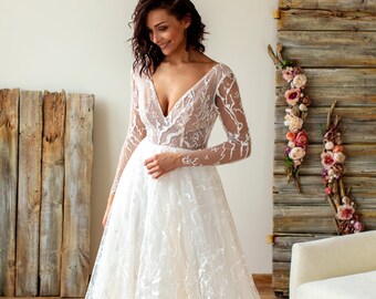 Wedding Dress Mermaid Cut Tulip Sleeves Sweetheart Neckline 56