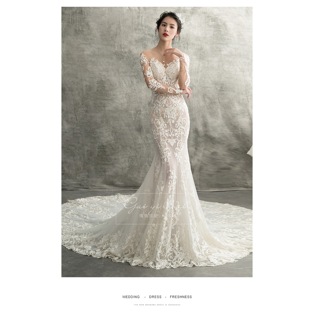 Pre Order Cream Long Sleeve Mermaid Fishtail Wedding Bridal Dress